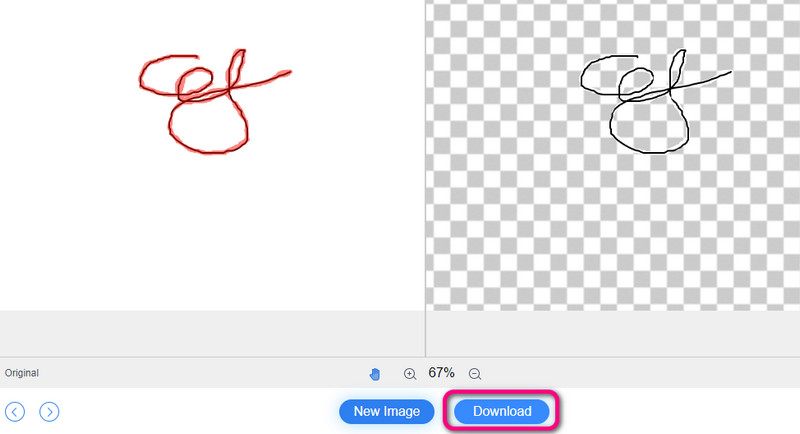 Když jste s procesem spokojeni, můžete uložit konečný podpis kliknutím na tlačítko Stáhnout. Nyní víte, jak mít podpis na průhledném pozadí.