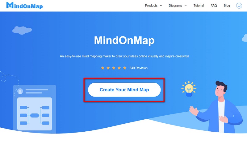 Chcete-li začít, otevřete prohlížeč a vyhledejte MindOnMap ve vyhledávacím poli. A v hlavním rozhraní klikněte na Vytvořte si svou myšlenkovou mapu knoflík.