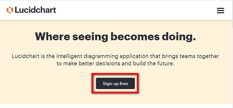 Začněte na oficiálních stránkách Lucidchart. Dále si zaregistrujte bezplatný účet.