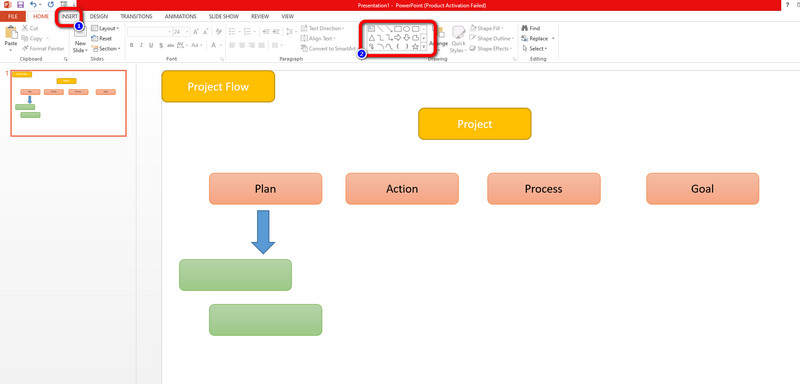 កម្មវិធីក្រៅបណ្តាញមួយផ្សេងទៀតដែលអ្នកអាចប្រើគឺ Microsoft PowerPoint ។ កម្មវិធីនេះមិនត្រឹមតែពូកែបង្កើតបទបង្ហាញប៉ុណ្ណោះទេ។ អ្នកក៏អាចប្រើវាសម្រាប់ការគ្រប់គ្រងគម្រោងផងដែរ។ ប្រសិនបើអ្នកចង់បង្កើតការណែនាំសម្រាប់គម្រោងរបស់អ្នក PowerPoint អាចធ្វើដូច្នេះបាន។ ការរៀបចំគម្រោងគឺមានភាពងាយស្រួលក្នុងកម្មវិធីនេះ។ អ្នកអាចប្រើរាងផ្សេងៗដើម្បីស្រមៃមើលលំហូរនៃគម្រោងទាំងមូល ដោយធ្វើឱ្យវាអាចអនុវត្តបានចំពោះស្ថាប័ន។ អ្នកក៏អាច បង្កើតដ្យាក្រាម Venn ដោយប្រើ PowerPoint ។ ទោះយ៉ាងណាក៏ដោយវាមានគុណវិបត្តិមួយចំនួន។ Microsoft PowerPoint មានតម្លៃថ្លៃ។ អ្នកមិនអាចប្រើមុខងារពេញលេញនៃកម្មវិធីដោយមិនចាំបាច់ទិញវាទេ។ ដូចគ្នានេះផងដែរអ្នកត្រូវបង្កើតគំរូរបស់អ្នក។