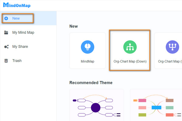 MindOnMap Org Creator គឺជាឧបករណ៍បង្កើតតារាងអង្គការដែលអាចចូលប្រើបានច្រើនបំផុតដែលខ្ញុំធ្លាប់ប្រើ។ ហើយវាផ្តល់នូវប្រធានបទផ្សេងៗ ដែលអនុញ្ញាតឱ្យខ្ញុំបង្កើតតារាង org ដ៏ទាក់ទាញ។