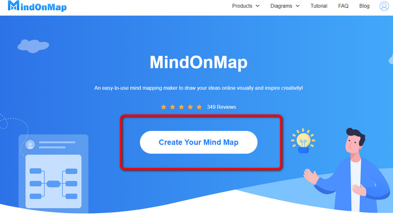 Tarayıcınıza gidin ve MindOnMap İnternet sitesi. Daha sonra sizden bir MindOnMap hesabı oluşturmanızı isteyecektir. Bundan sonra, Zihin Haritanızı Oluşturun seçenek. Monitörde başka bir web sayfası görünecektir.